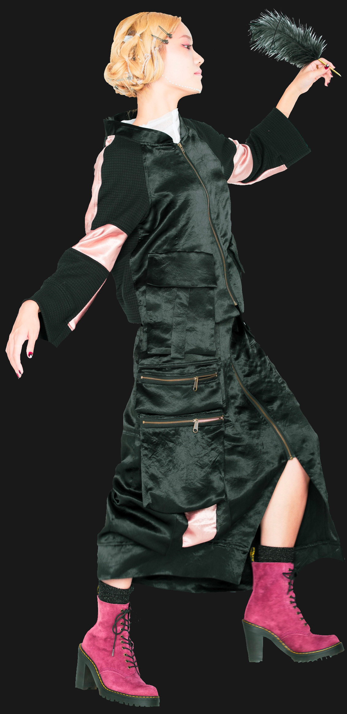 光沢の強いサテンはやんちゃでグラマラスな印象。