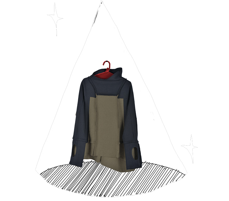 〈無駄を省いたデザイン〉なのに、袖が3本付いてます。