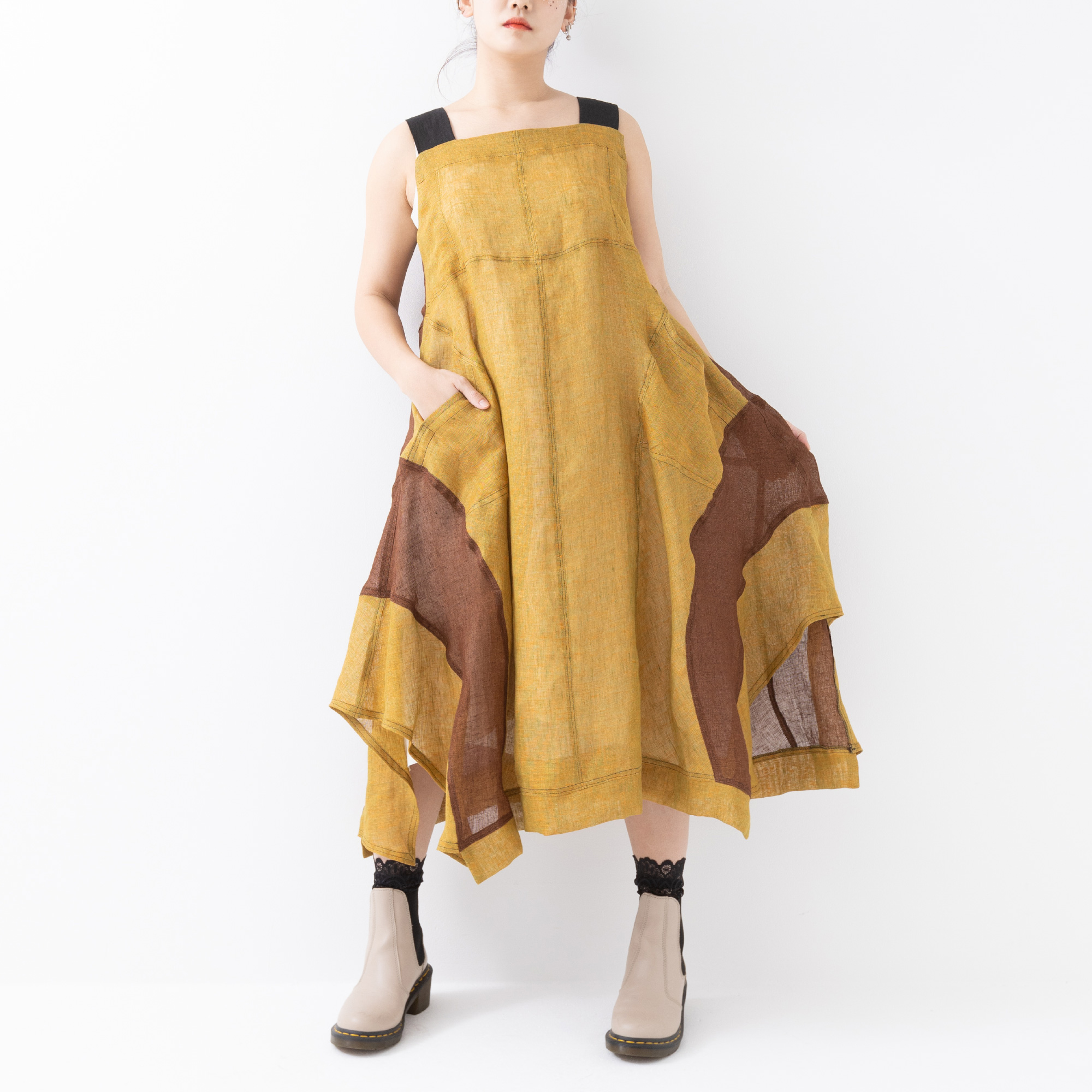 This dress is made in an unusual, puzzling way that is not bound by theory of making clothes.