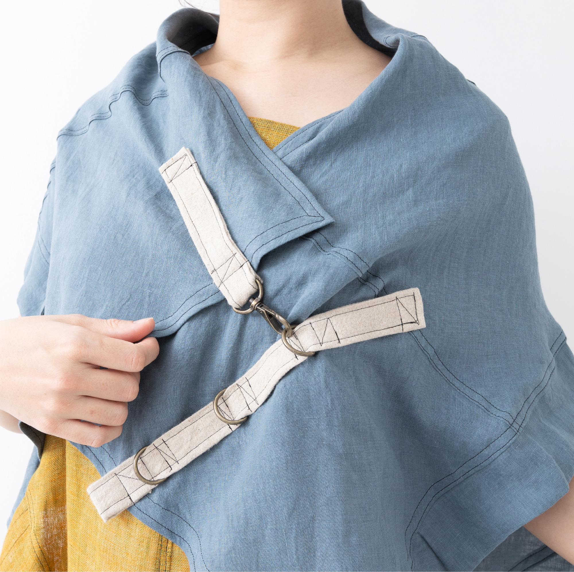 It's a playful and free-spirited item that can be fastened with the buckles hanging from the sides, or worn loosely with the hooks that can be fastened anywhere.