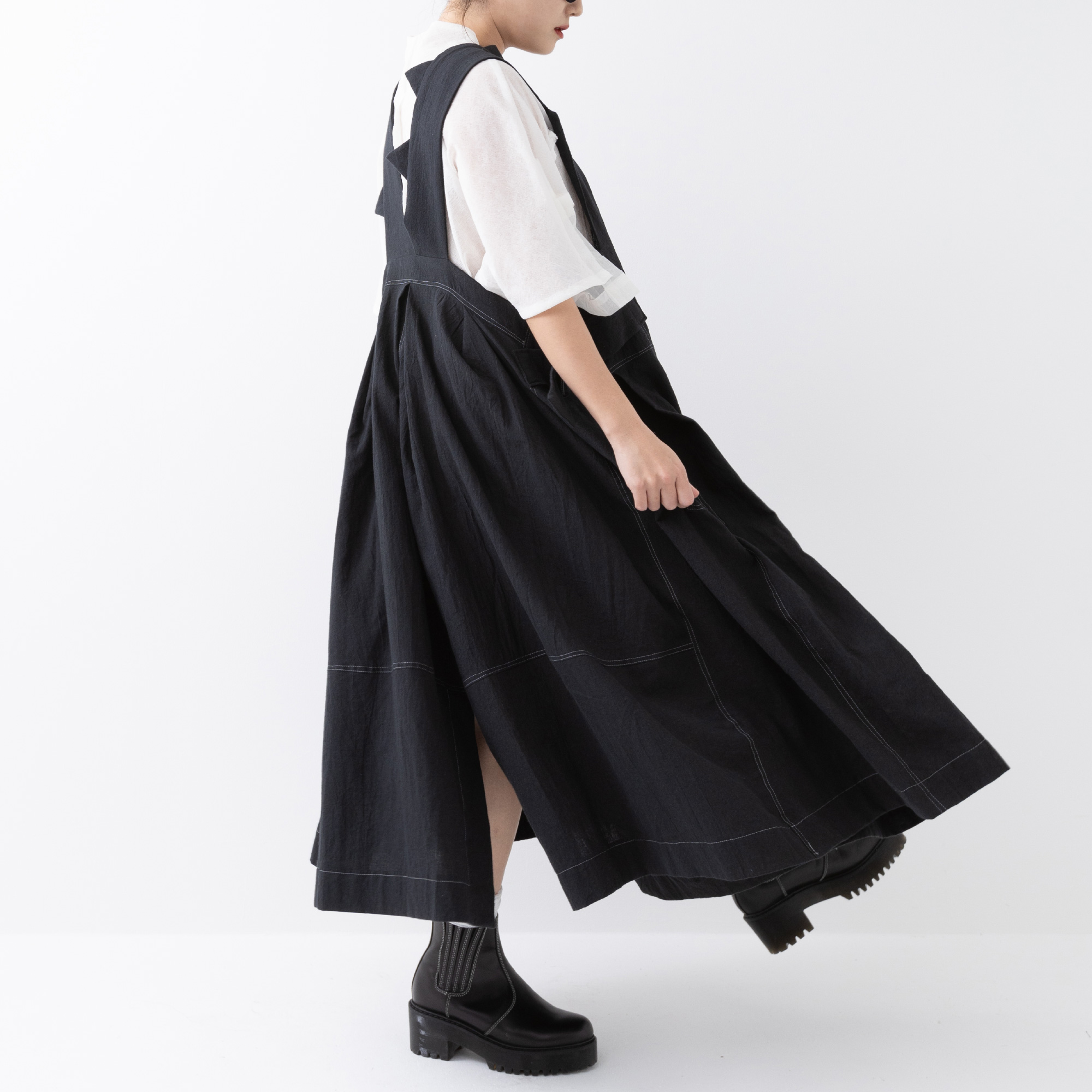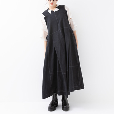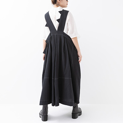 襟元から背中にランダムに配置した牙でダイナミックなジャンパースカート。