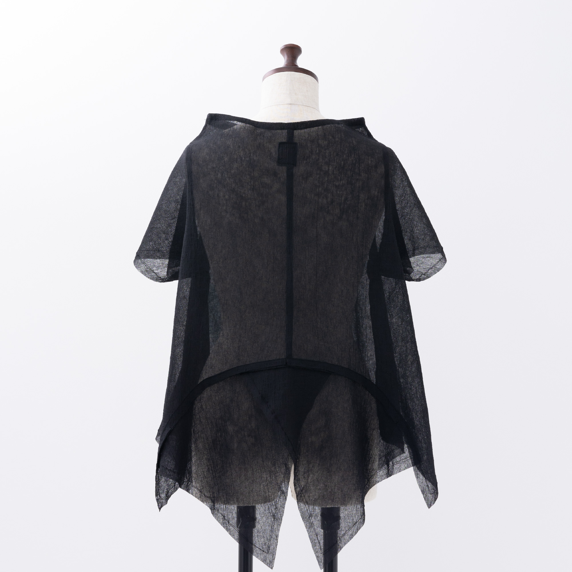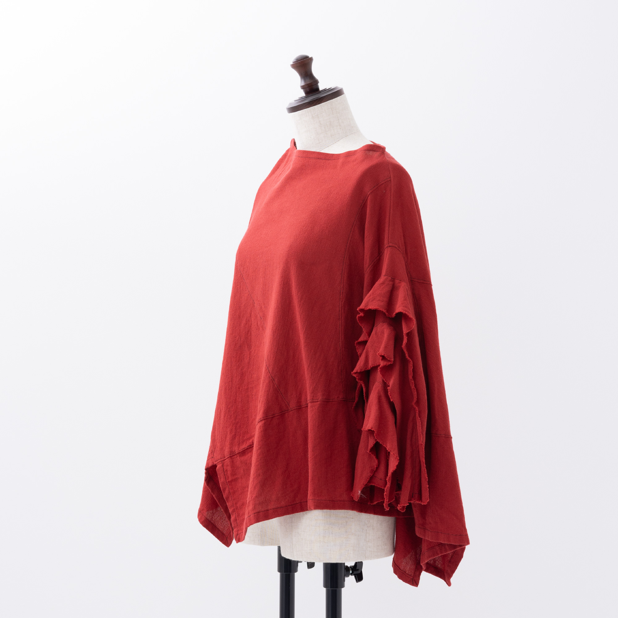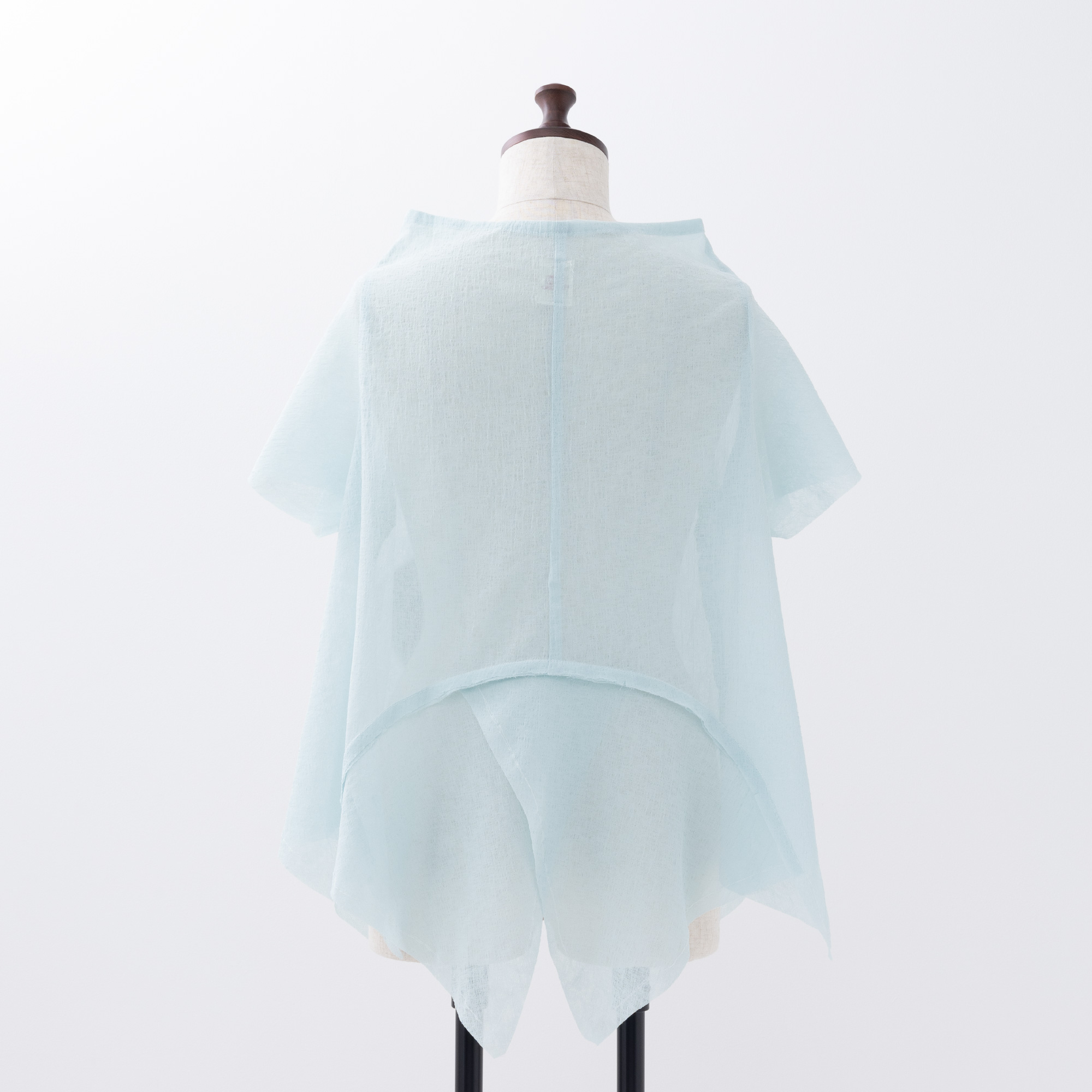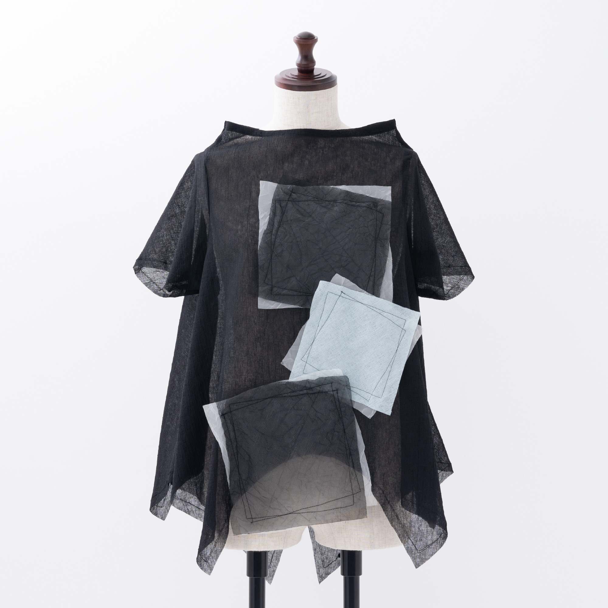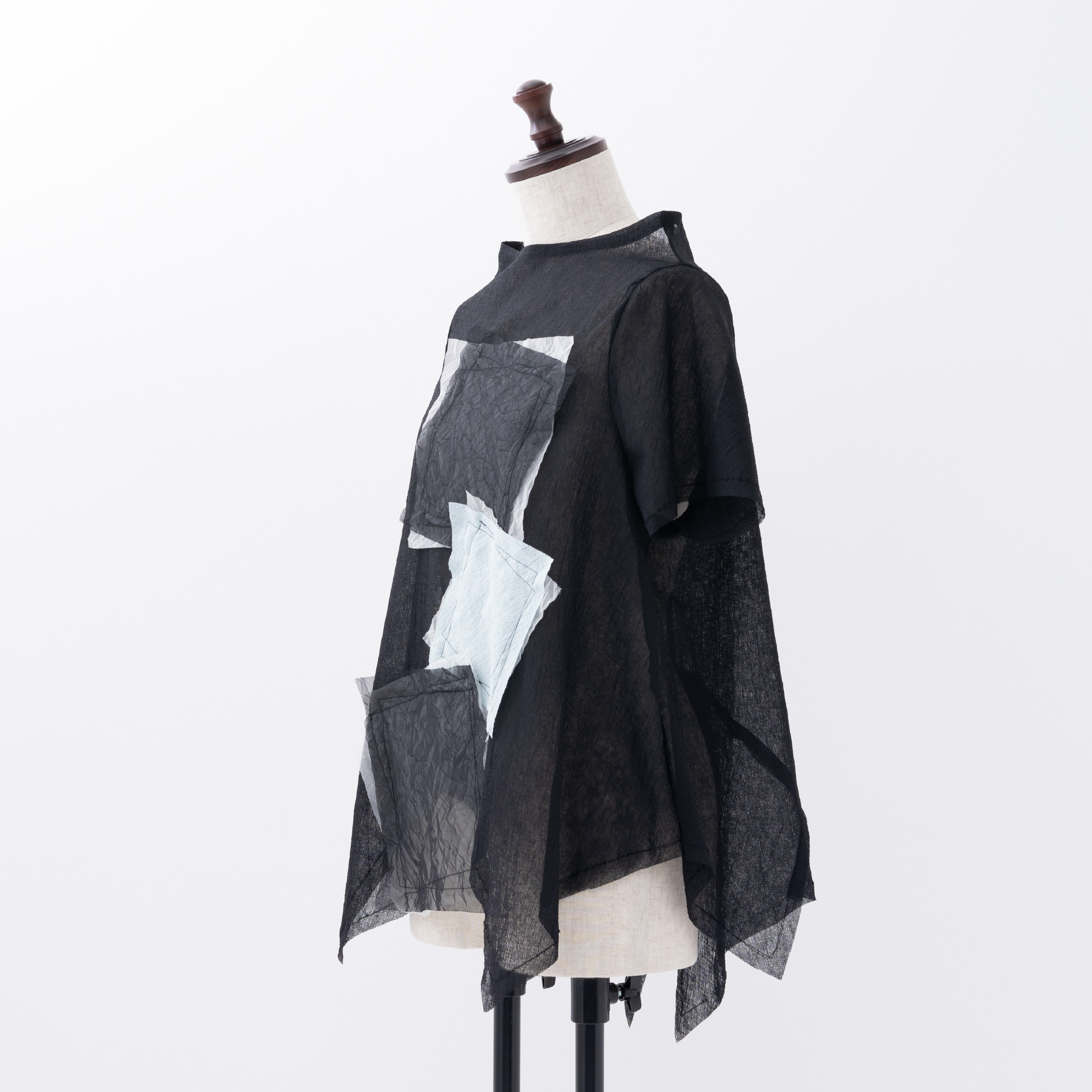 四角く大きなオーガンジーの袖は、ホールが2つあるので、半袖になったり七分袖になったりと変化します。