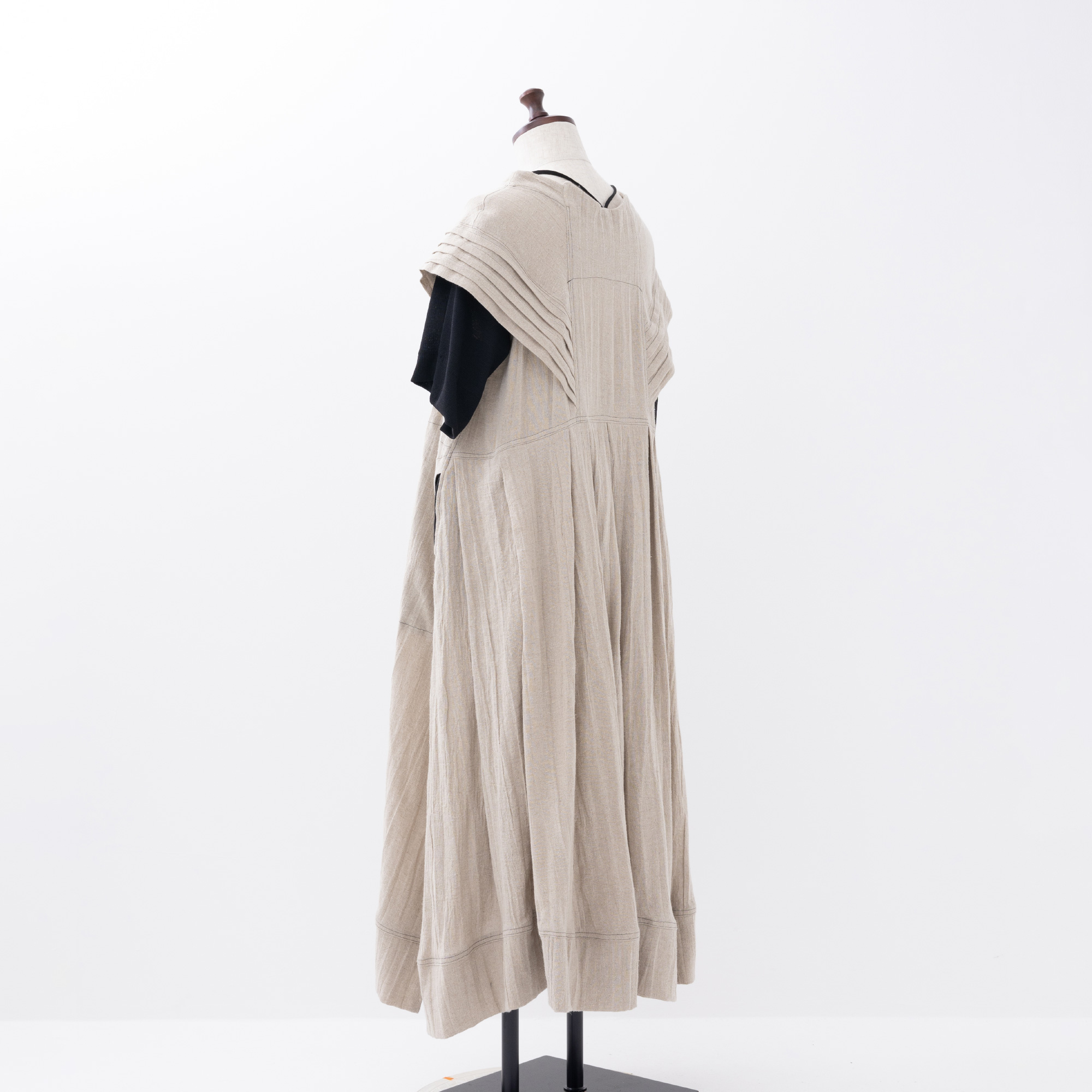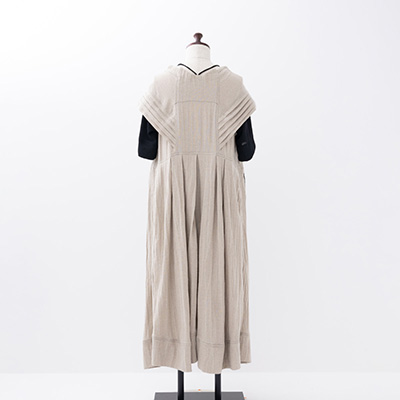 ピンタックのフレンチスリーブは小さな翼のように背中まで続き、中には柔らかなニットの袖があります。