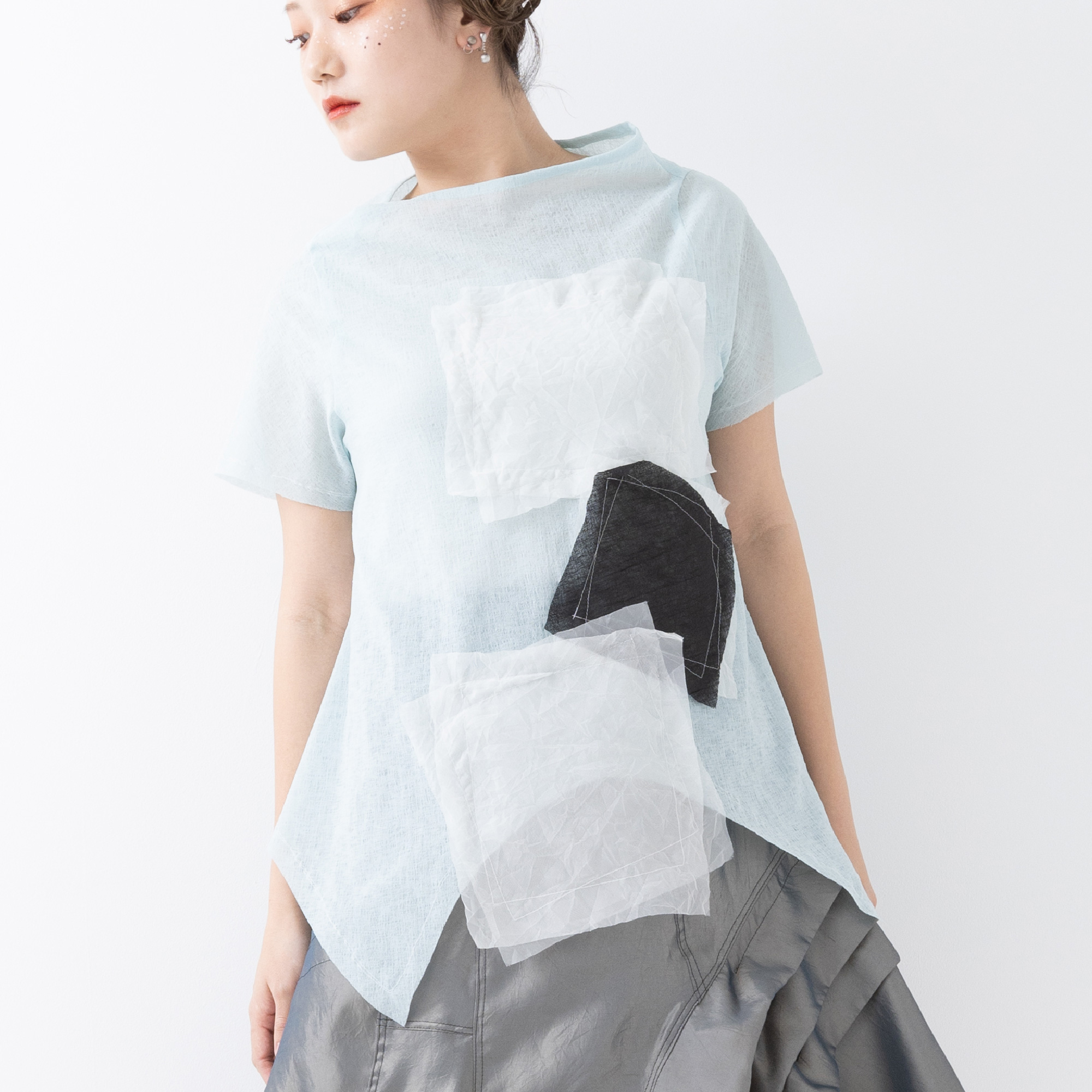 夏のソーダ水のような、冷たい水の滴りのような、明るくて爽やかな透明感。夏のイメージを凝縮したトップス。
