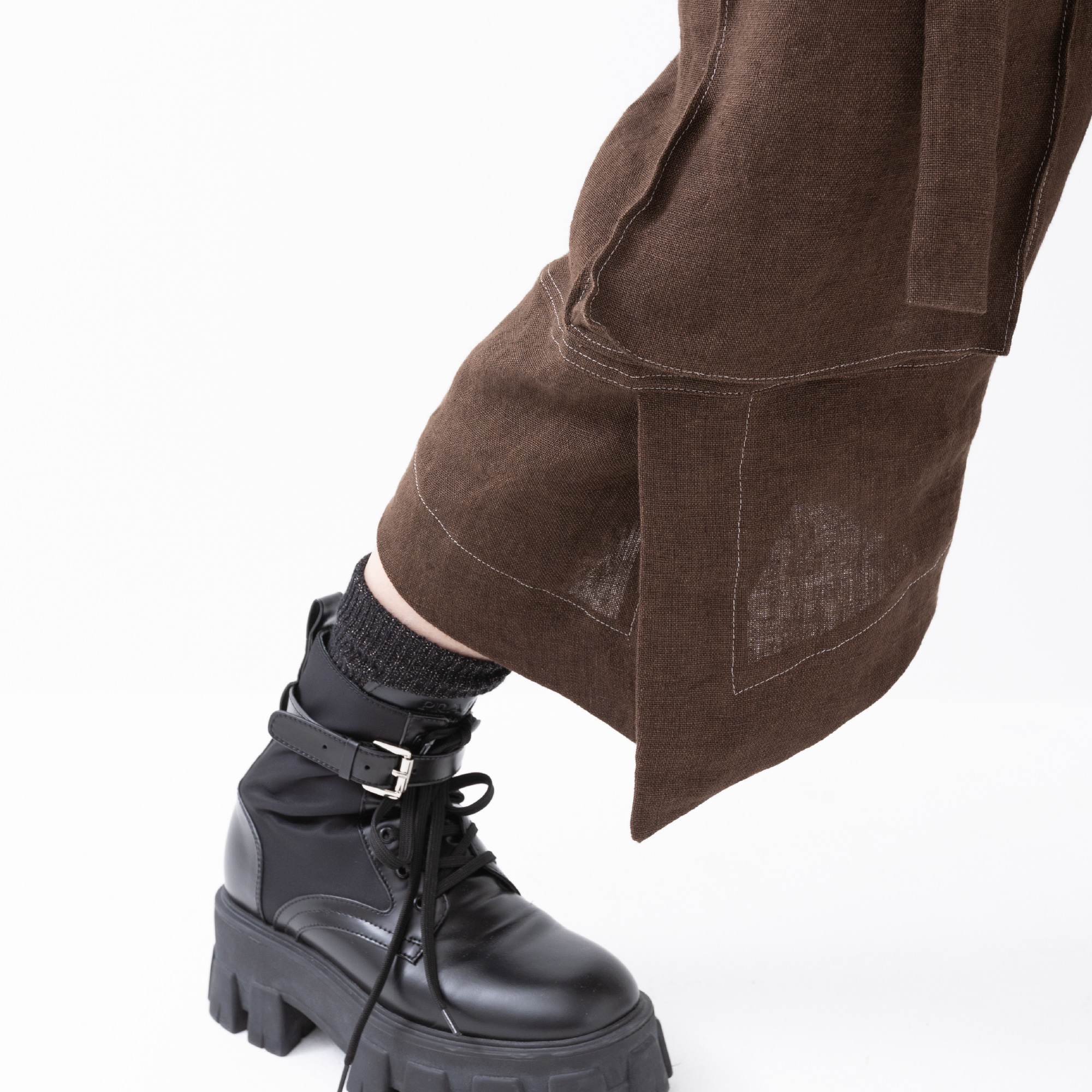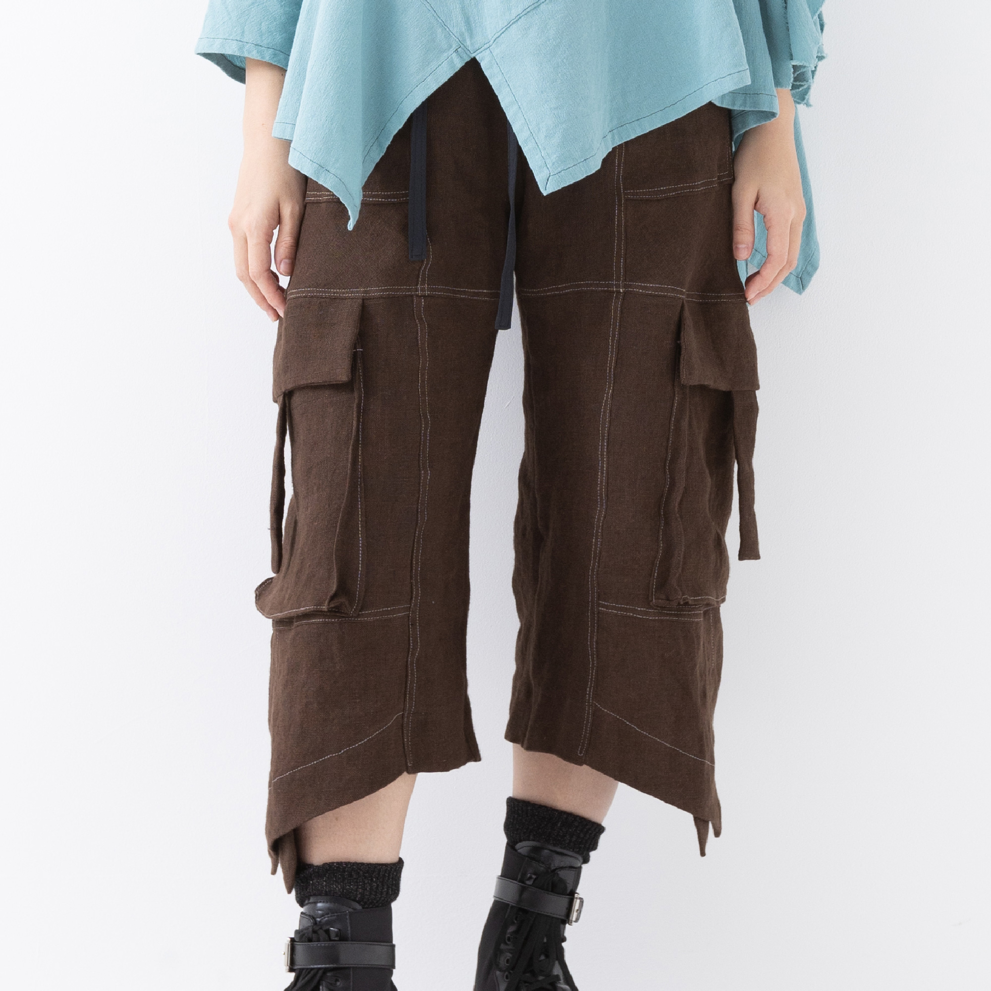 This time, we make rough, high-quality linen 3/4 length pants.