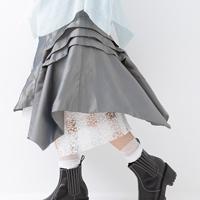 色んな角度から眺めたくなる、鏡の前でくるりと回ってみたくなるスカートです。