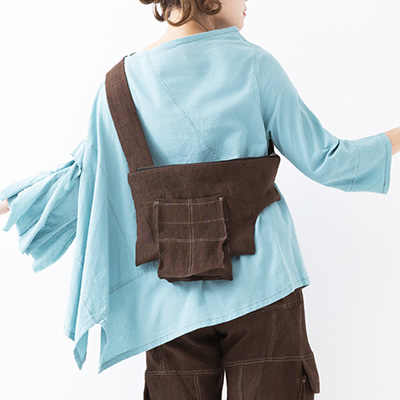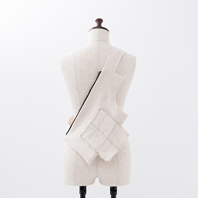 体に沿う、服を傷つけない、纏うことの出来るバッグです。