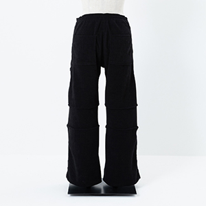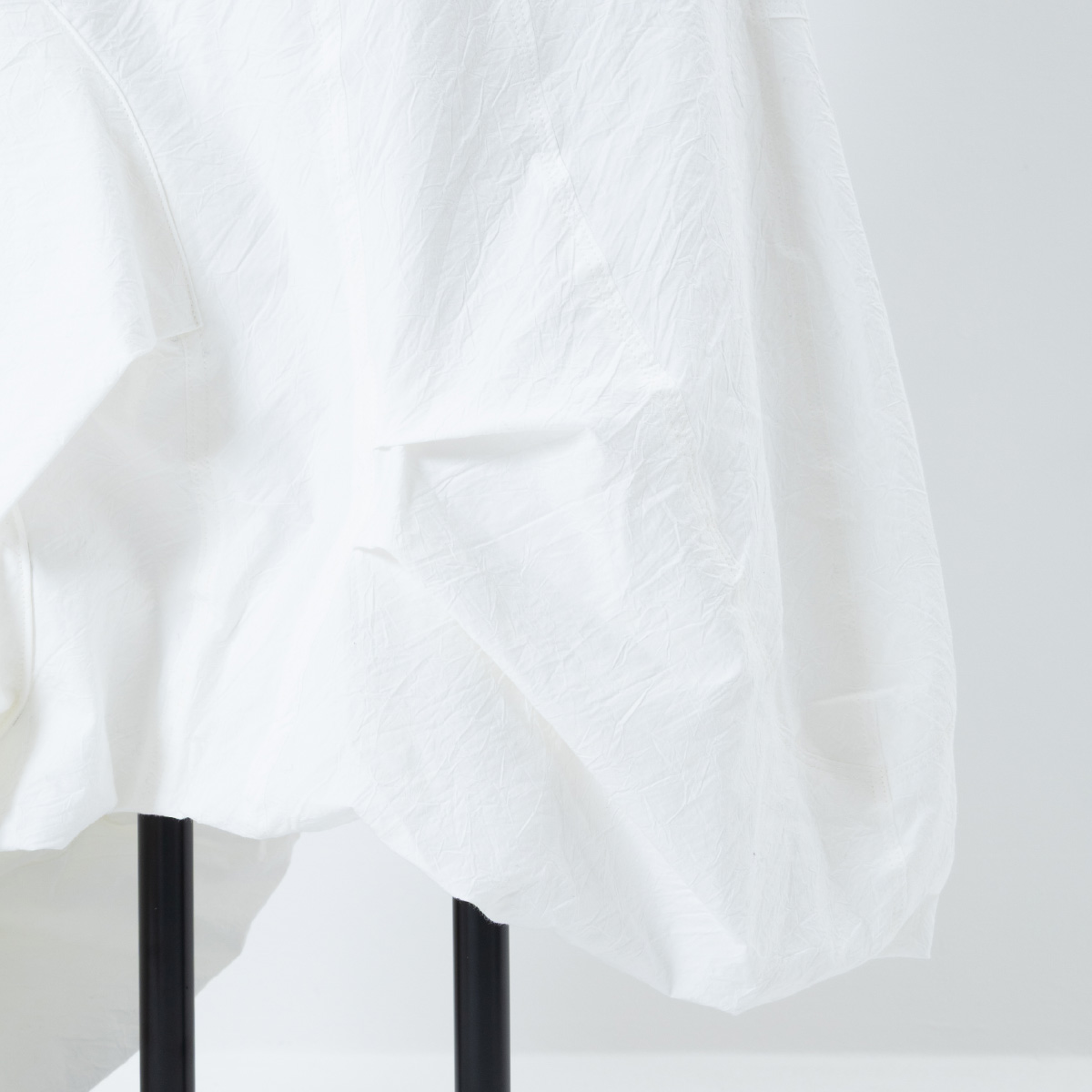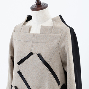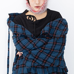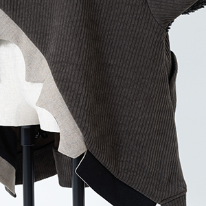 By leaving the edges of the neck and cuffs unfinished, it looks delicate and fragile, but also gives a punk and rough impression.
