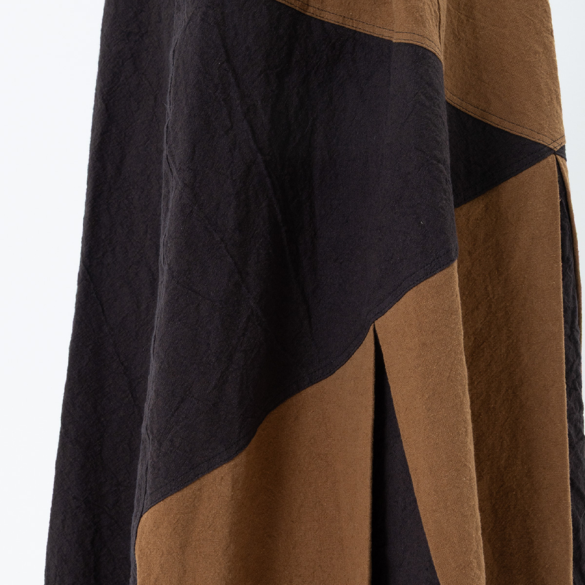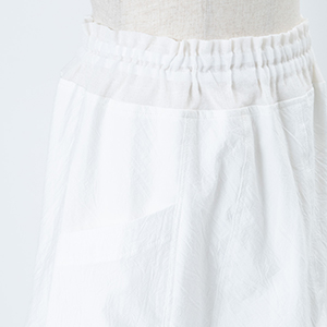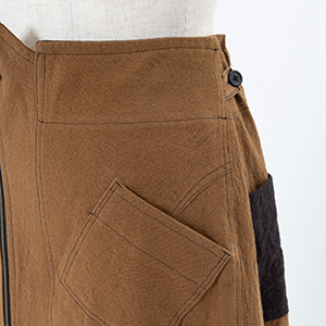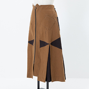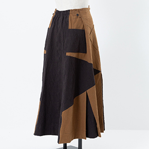 灯台から放たれるライトのようなデザイン。直線的なシルエットがはっきり出る、綿麻のハードな生地は、さらりとした触り心地で、年中楽しめるアイテム。Aラインのシルエットをさらに動かす、4つのハコプリ。真っ直ぐに芯が通って、スッと背筋も伸びる巻スカート。