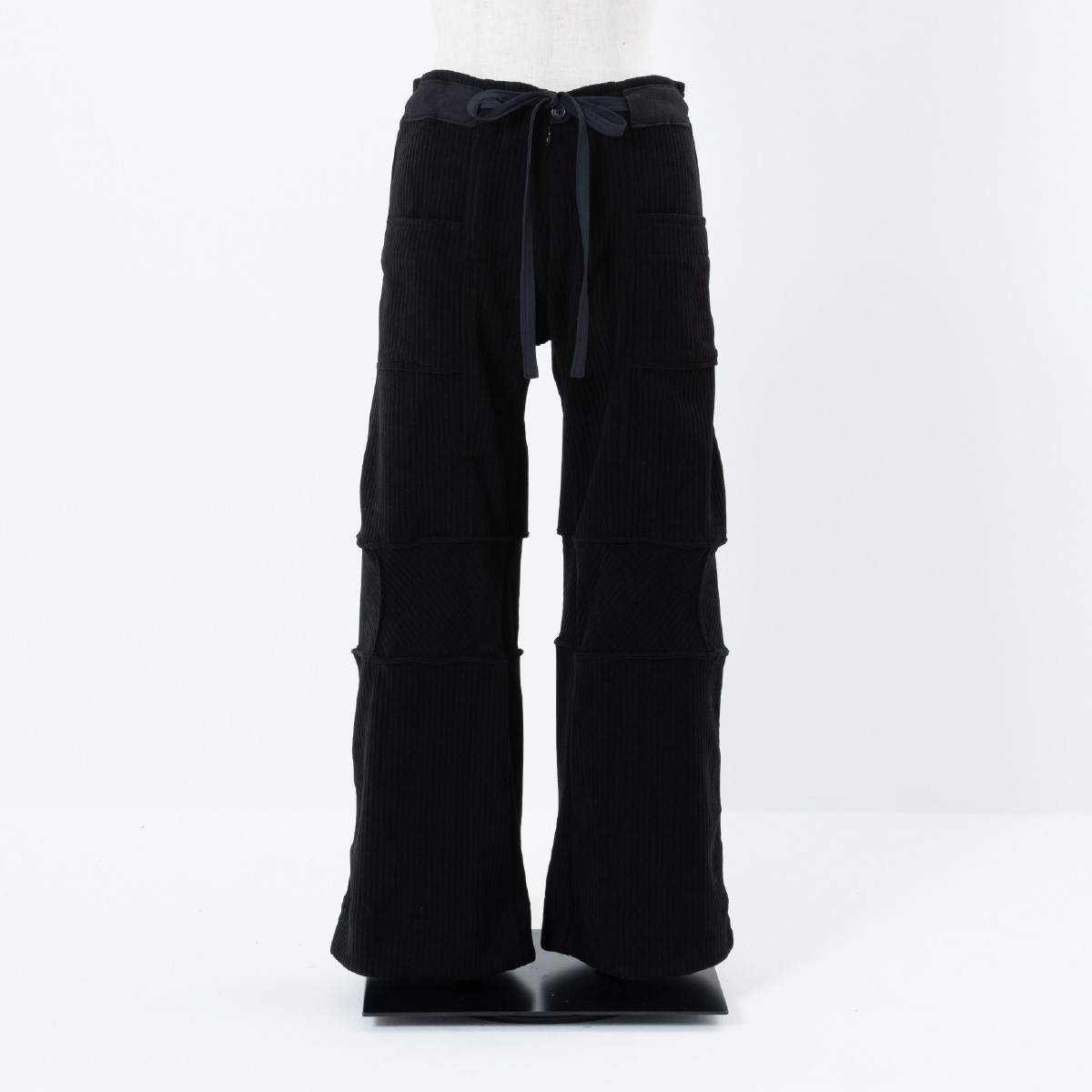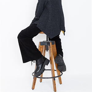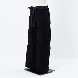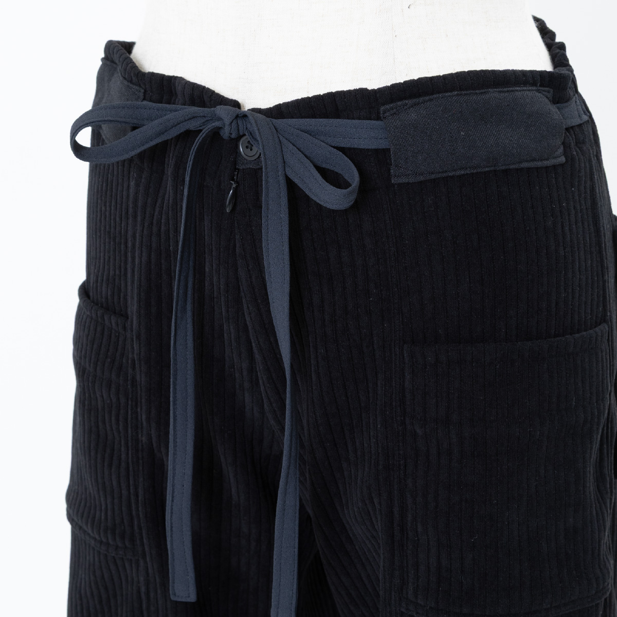 ドンと太い存在感のあるドカンパンツ。膝部分にバイアス裁ちを使い、立体感を出すステッチを入れ、膝位置を高く、スタイルのいいシルエットを目指す。厚みのあるコーデュロイで、季節感溢れるボトム。単色で使いやすい、冬のデイリーユースアイテム。
