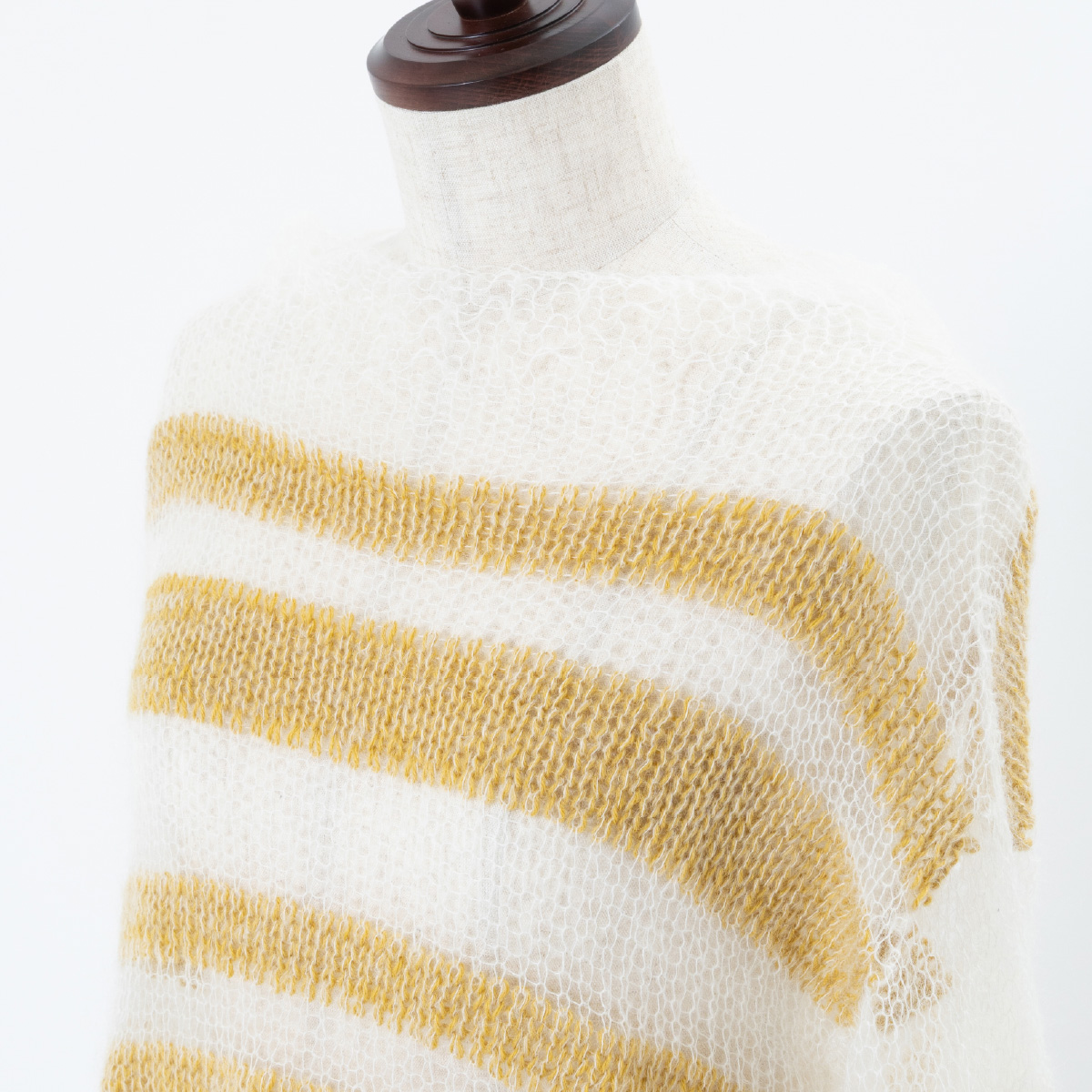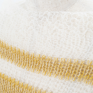 The running stitch of the mohair yarn resembles a tailor’s basting line