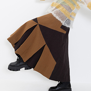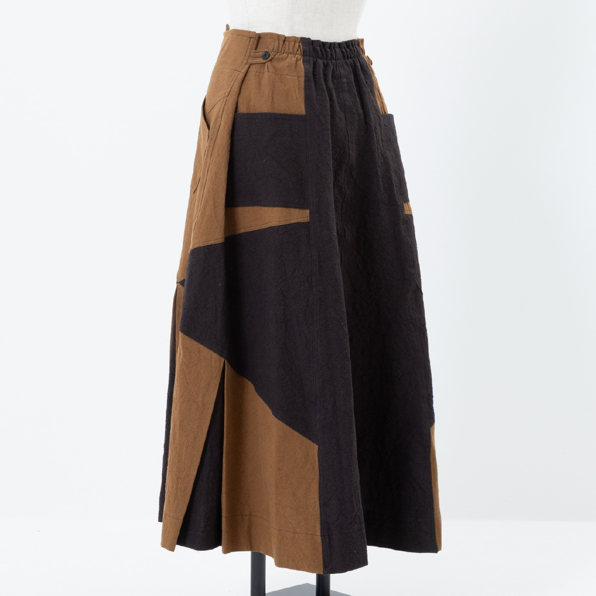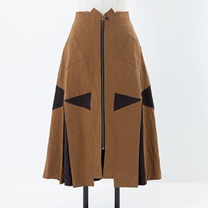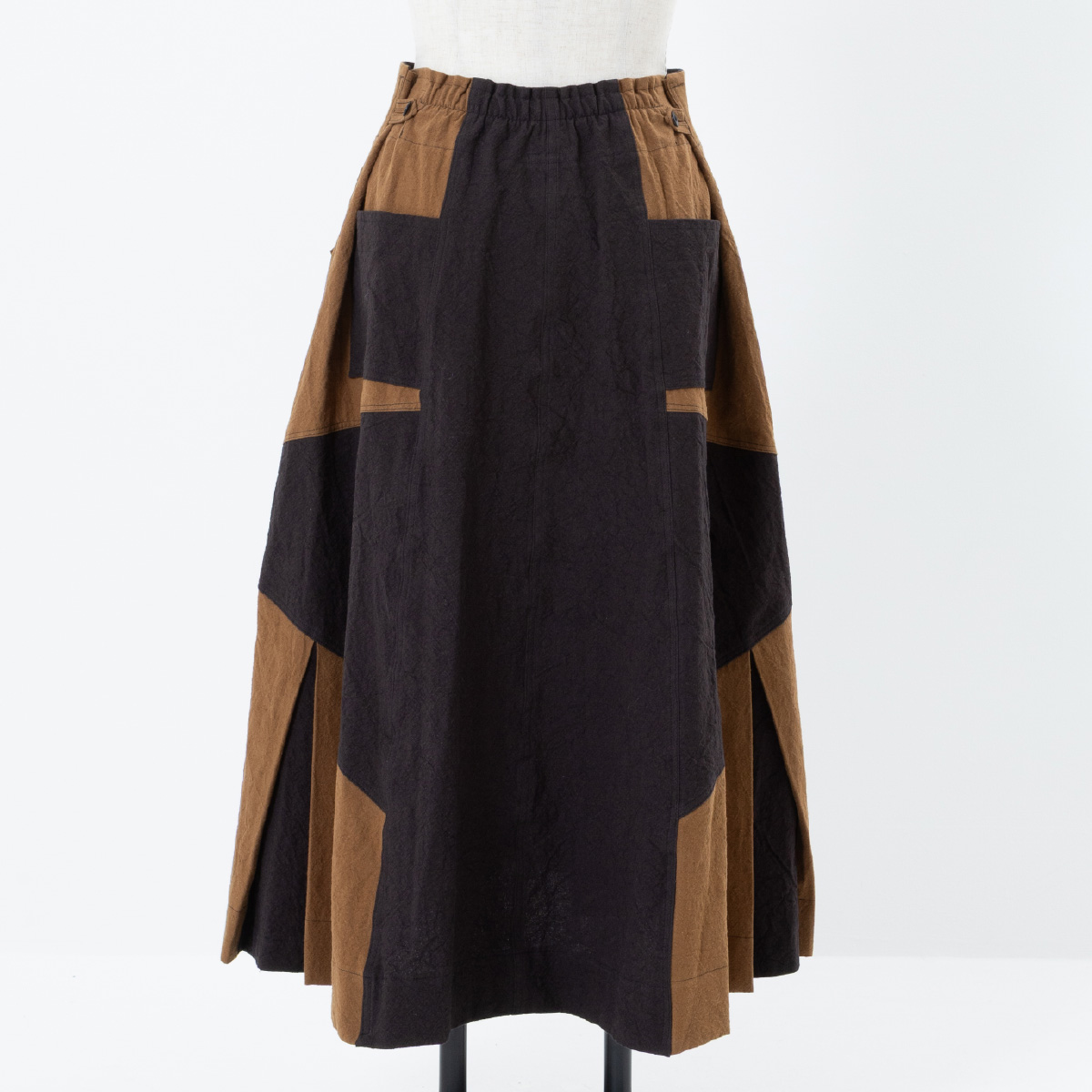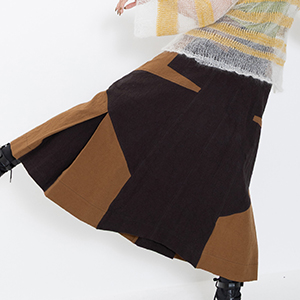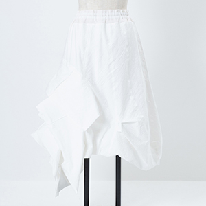 灯台から放たれるライトのようなデザイン。直線的なシルエットがはっきり出る、綿麻のハードな生地は、さらりとした触り心地で、年中楽しめるアイテム。Aラインのシルエットをさらに動かす、4つのハコプリ。真っ直ぐに芯が通って、スッと背筋も伸びる巻スカート。