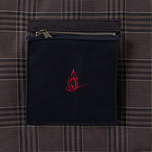 A gusseted pocket with an edgy design. The “Rin” logo right in the middle.
